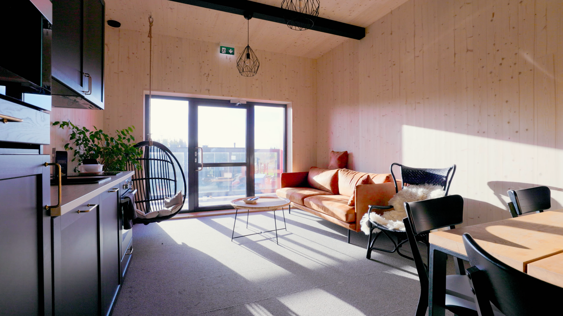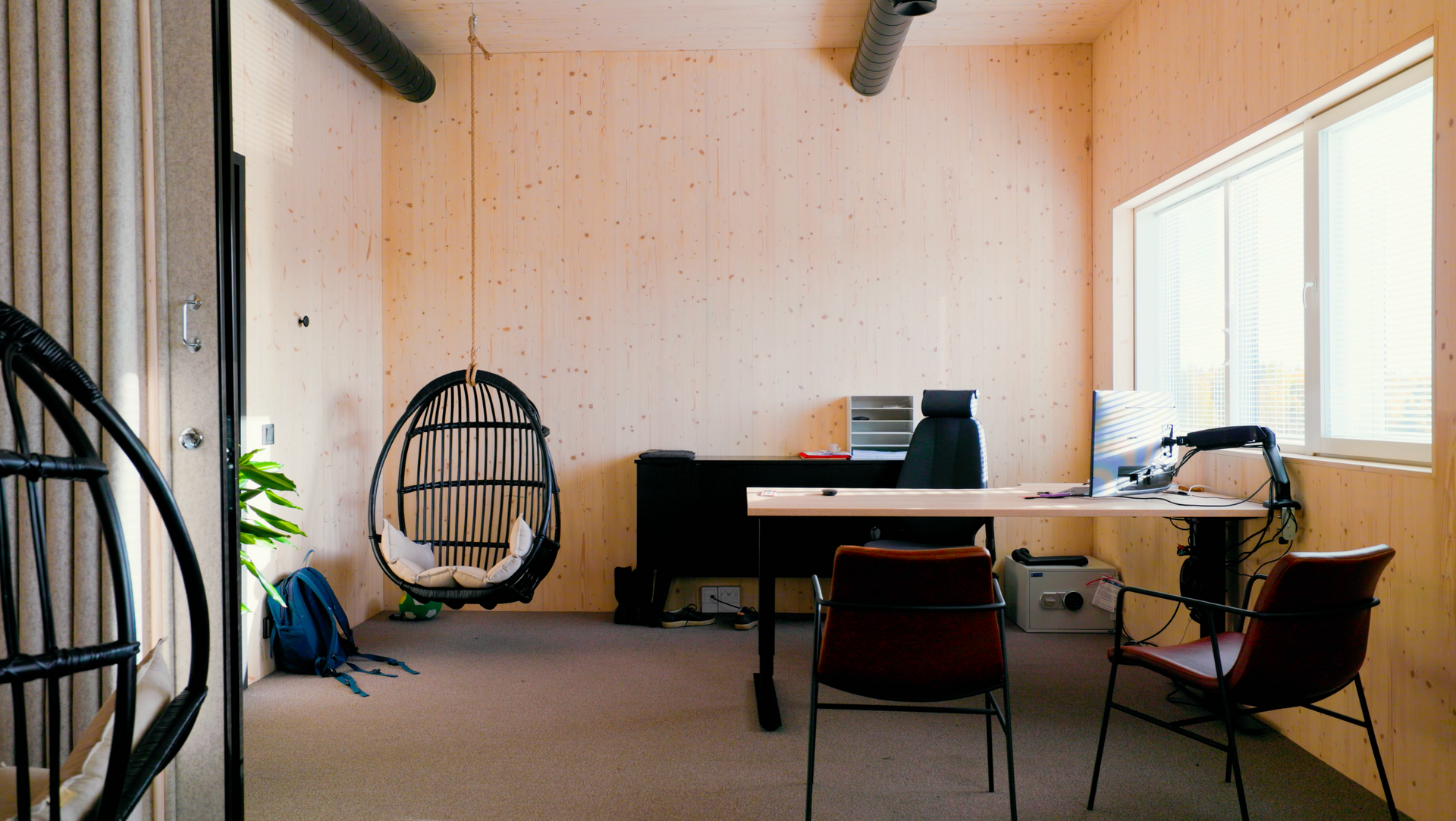 Tunnelmalliset ja viihtyisät toimisto- ja taukotilat toteutettiin CLT-massiivipuusta.